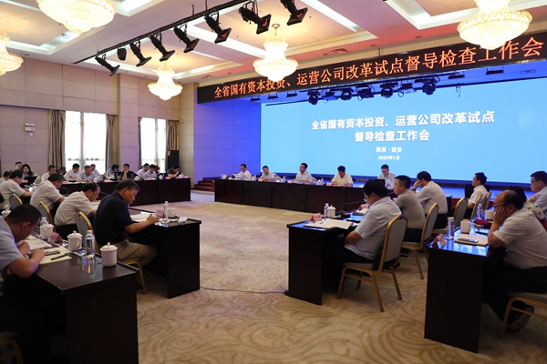 為扎實推進我省國有資本投資、運營公司改革試點工作,確保改革試點取得預期成效,按照省國資委試點工作整體安排,7月28日上午,全省國有資本投資、運營公司改革試點督導檢查工作會在陜煤集團召開。省國資委黨委委員、副主任李凱出席會議并講話,監事會主席李振東主持會議,省國資委資本運營處、上海國有資本運營研究院的有關領導和專家就開展督導檢查工作作了具體要求和說明。陜煤集團、陜投集團、陜有色集團、陜旅集團、中陜核集團、陜西糧農集團及長安匯通公司的主要負責人參加會議并作了試點工作交流。陜煤集團黨委書記、董事長楊照乾,副總經理趙福堂,集團總經濟師、企業管理部總經理杜平,各相關部門負責人參加了會議。