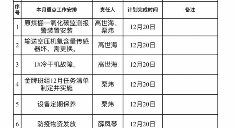 帶著問題針對性的去排查隱患,既縮短了排查時間,且排查的隱患有質有量。每月中心安全環保例會,會議紀要上列工作清單,落實工作任務,工作責任人,工作時間節點。以“清單”為載體,在次月工作例會上就上月工作安排完成情況進行通報,讓工作負責人“紅紅臉”、“出出汗”,從而達到工作落實到位的目的。